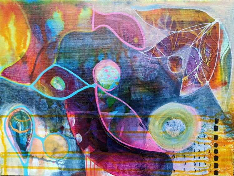 - Even if this is an intuitive painting, now might be the time to apply some thinking: is it too XXX? (dark/light/detailed/plain/blue/yellow), if your painting is “too” then apply a bit of the opposite.