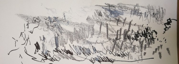 I look at the drawing above, and I know there were birds, a slight wind on my face, a plane, cars passing by and a boat motoring in the harbour.