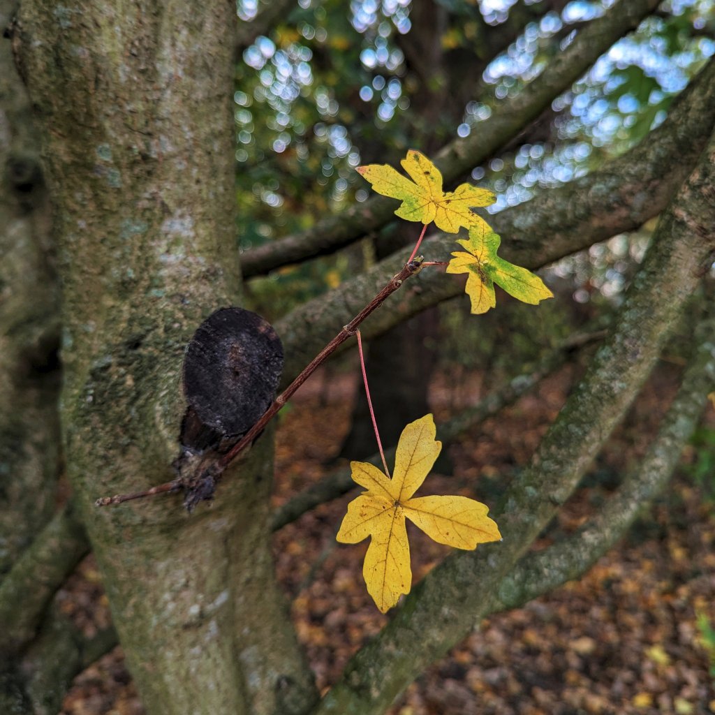 Out in the landscape, connection feels even more tangible, everything touches everything else. I was very drawn to leaves, the last leaf, still hanging on, in connection with the branch. And trees growing so close together it was hard to see if they were in fact one.