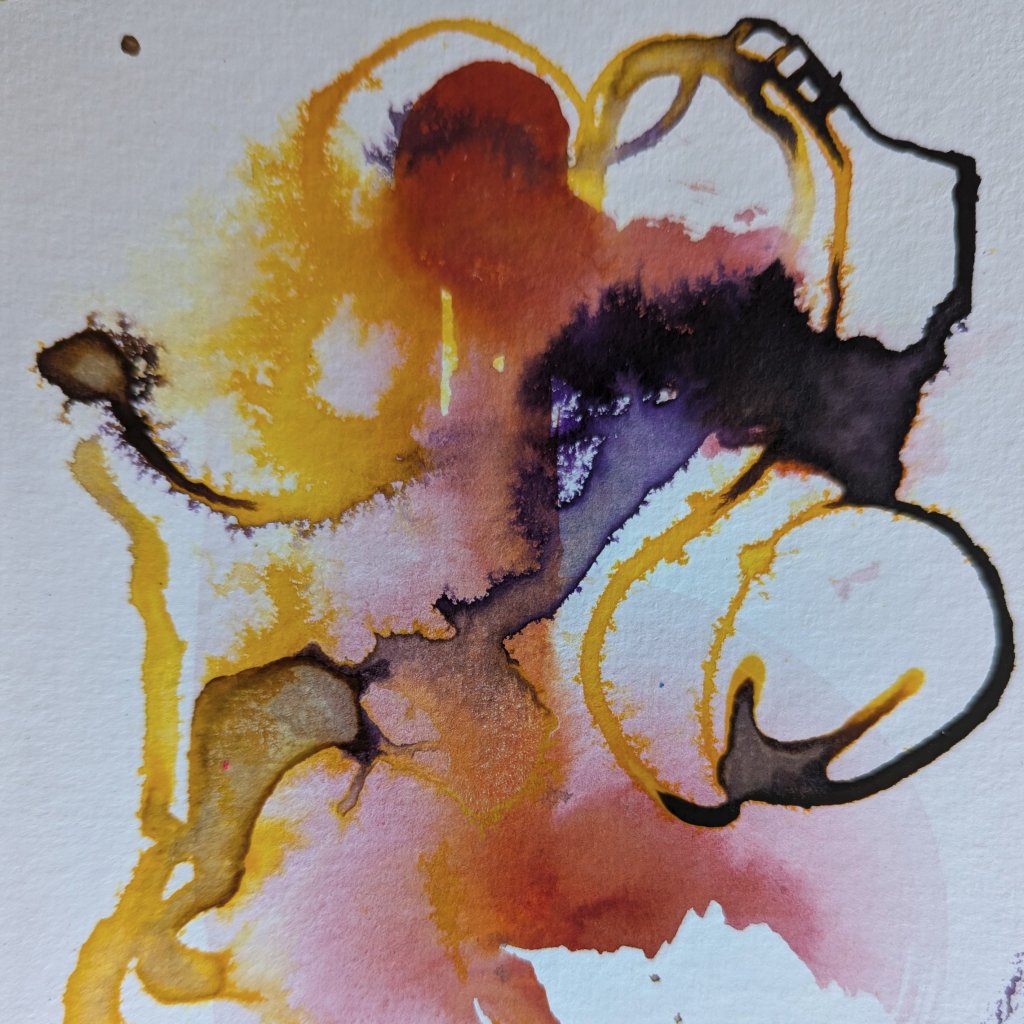 I’ve been playing with acrylic and watercolour inks this week, wetting the paper and dropping inks and letting them find their own connection. I love the randomness of what happens – serendipity! (to quote a previous word of the week).