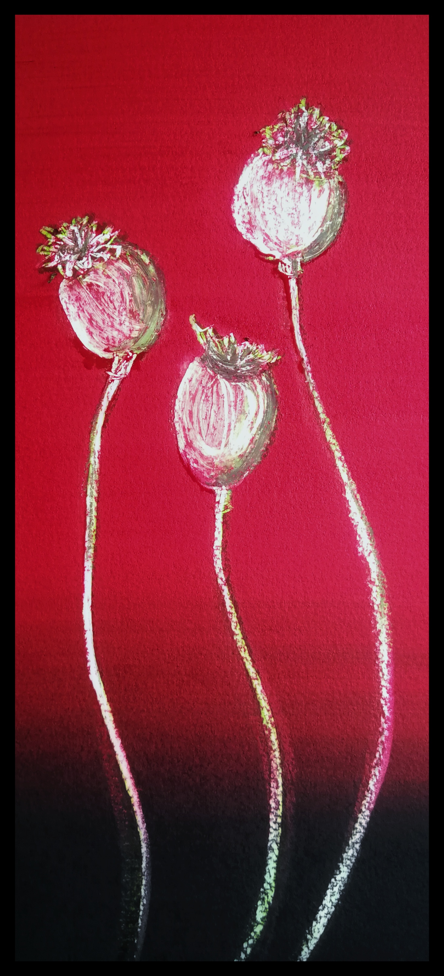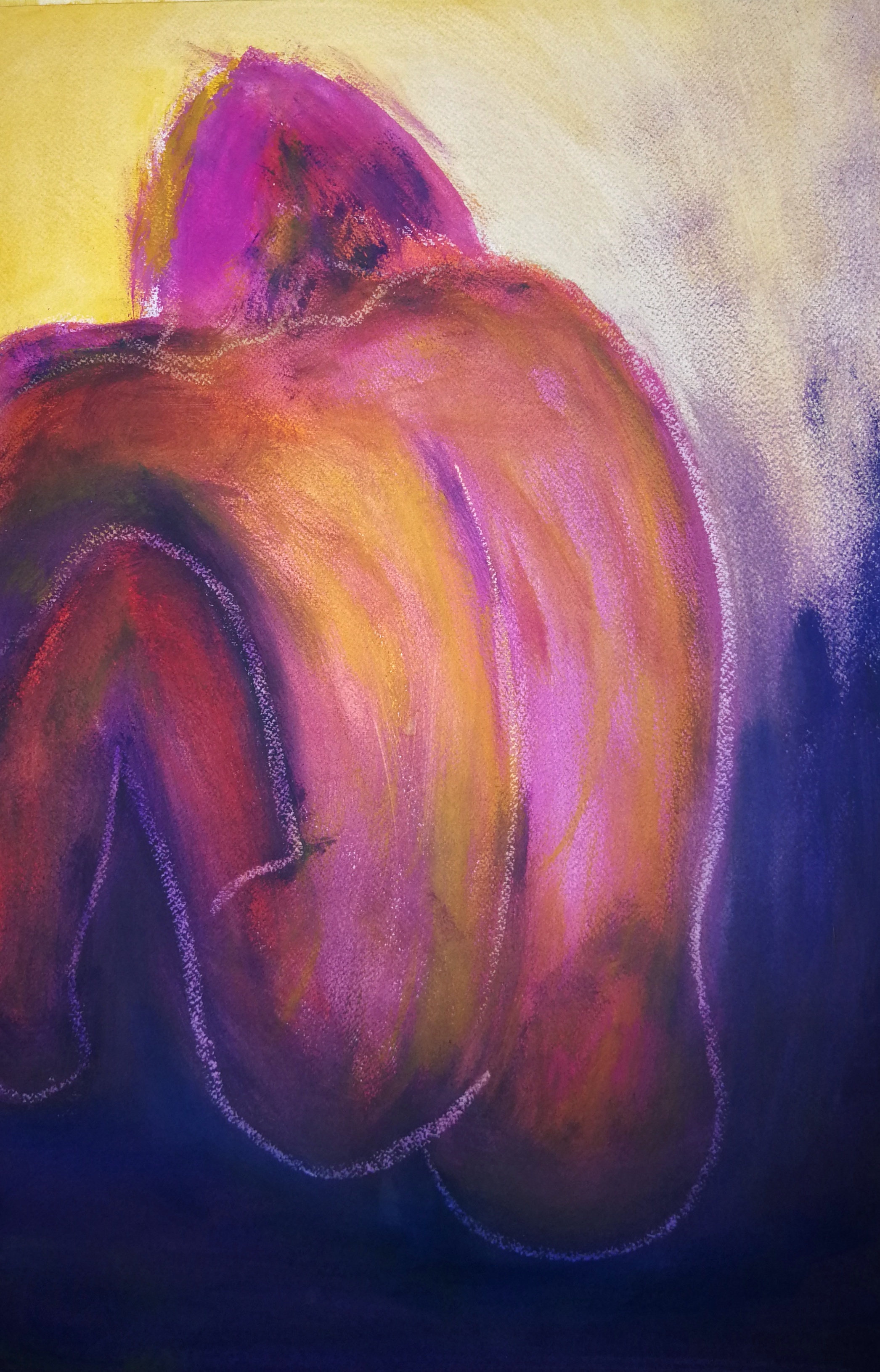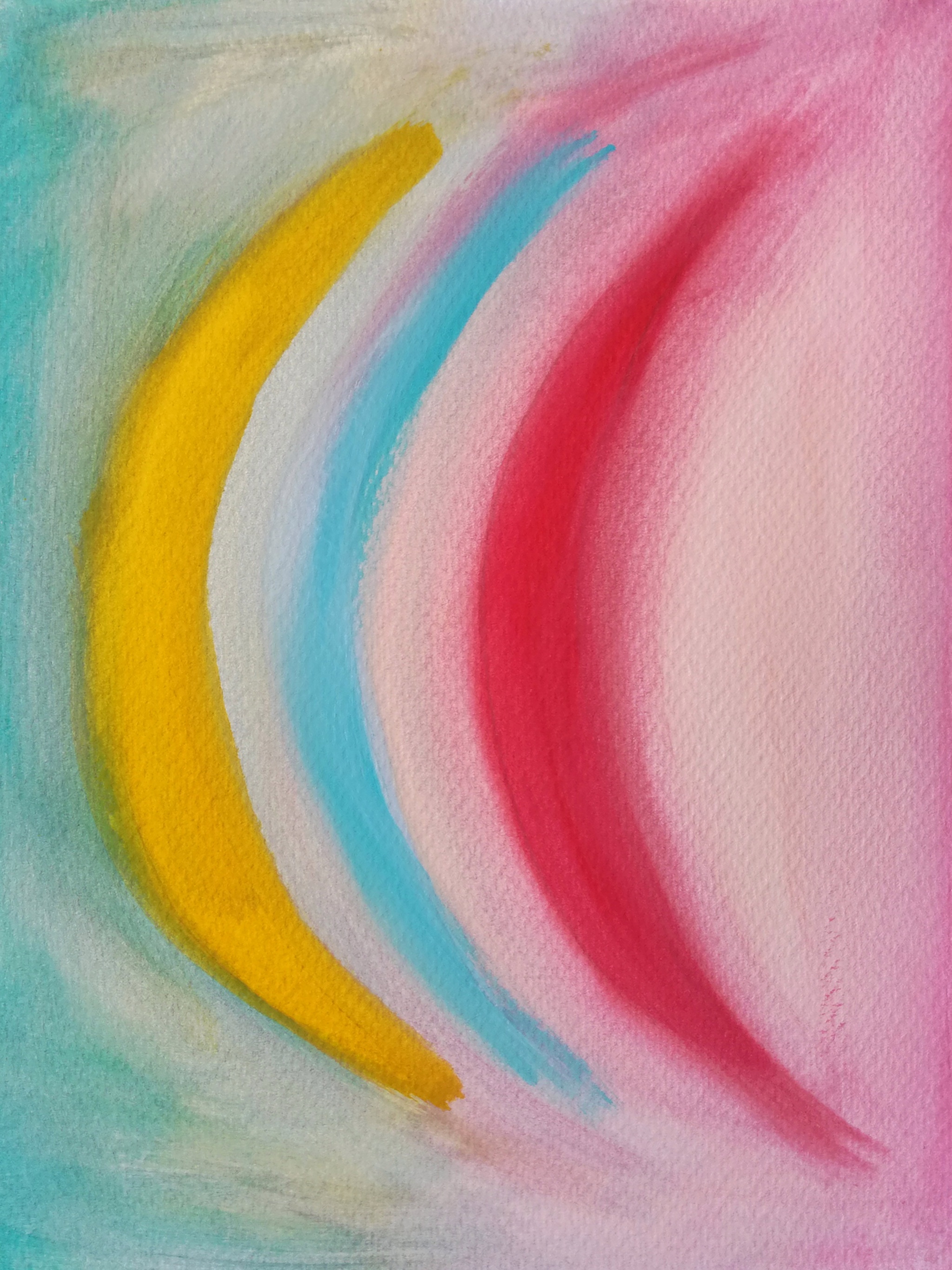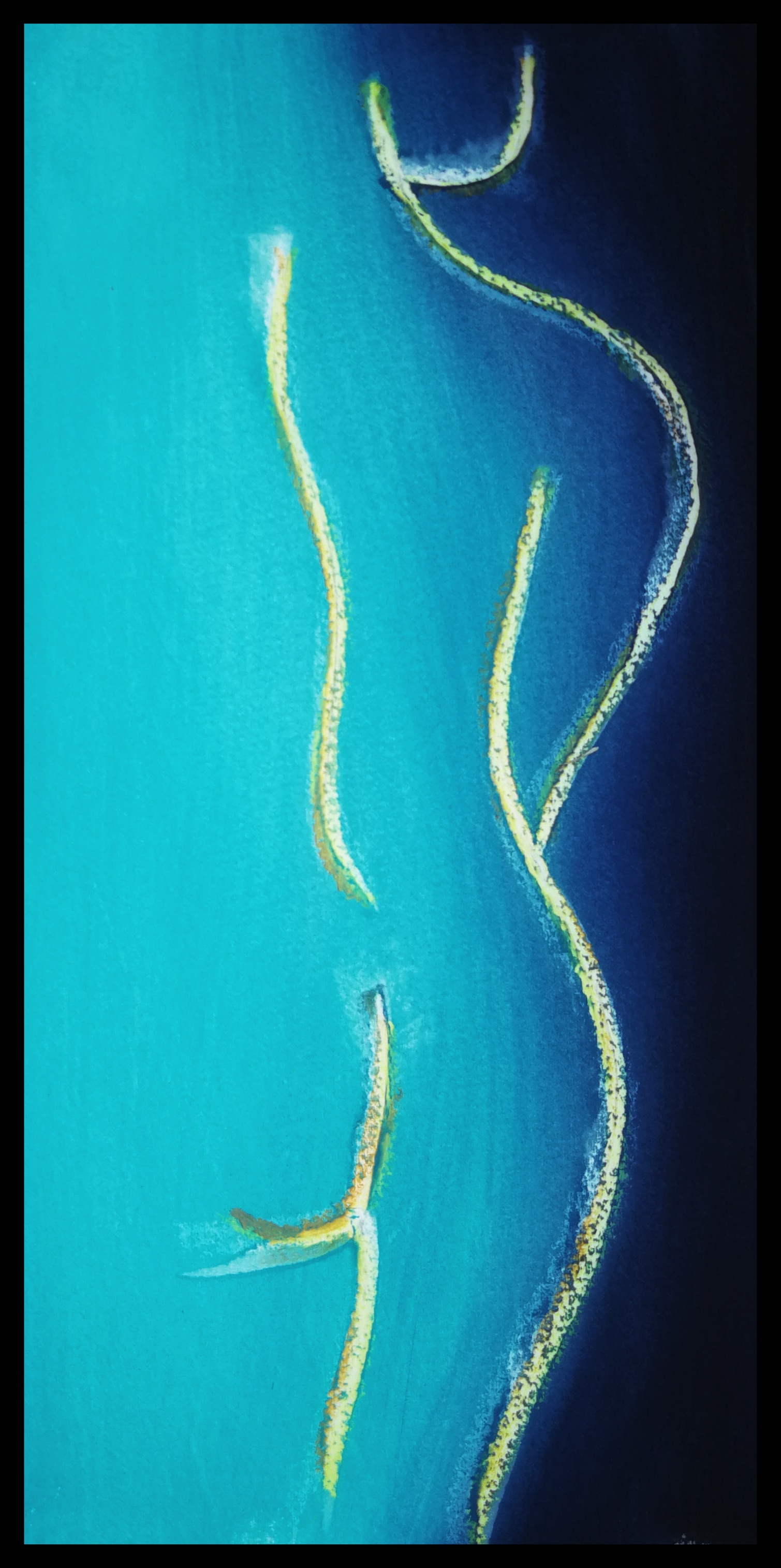 I have an unusual way of applying watercolour – rather than using much water, I apply it thickly, almost dry, with a large brush! The result is some wonderful strong colours and the ability to blend the colours. The following pictures were exhibited at Yellow Edge Gallery in 2019 as part of a group exhibition with Peninsular Artists.